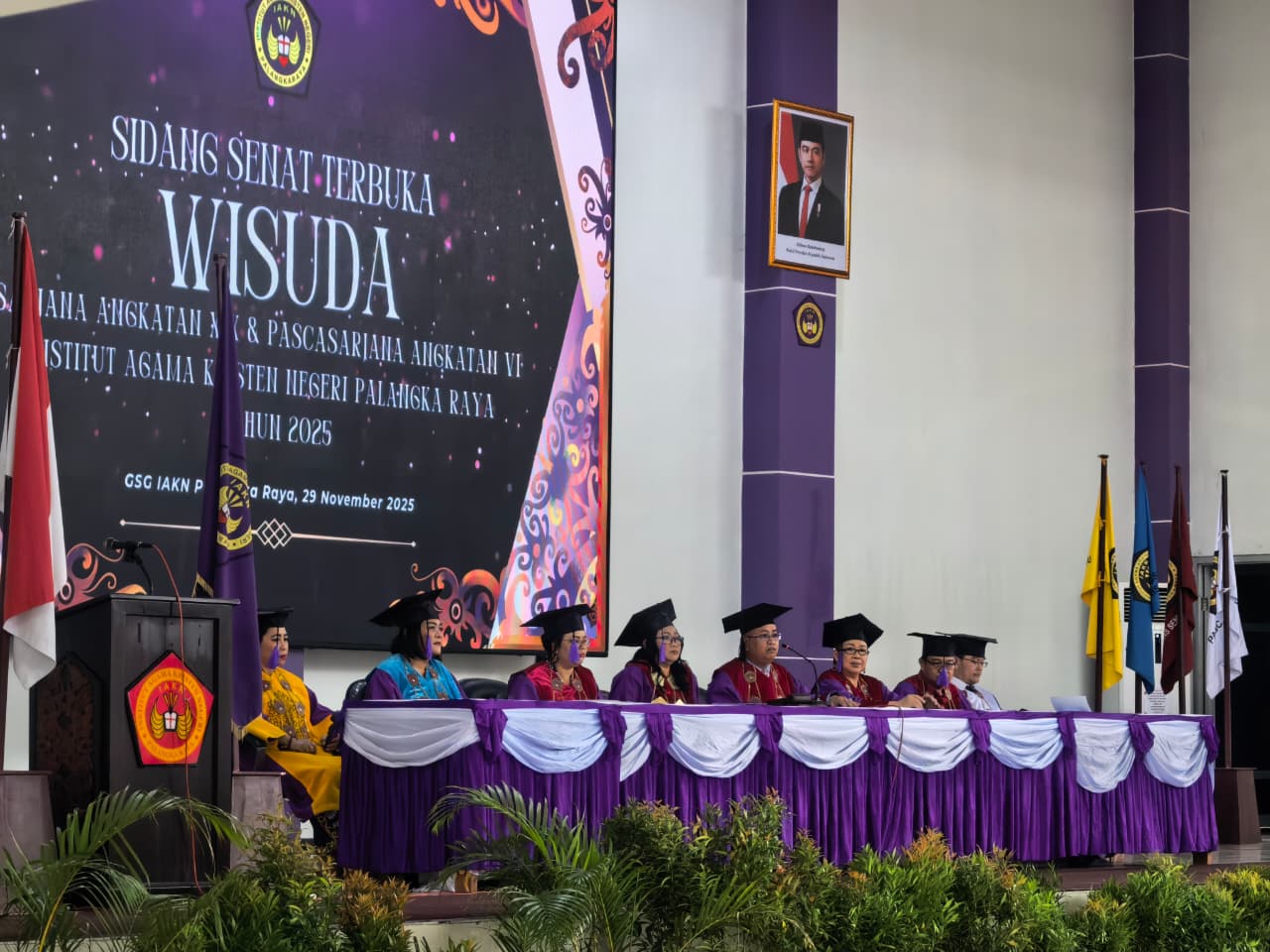 Palangkaraya---Institut Agama Kristen Negeri (IAKN) Palangkaraya menggelar Sidang Senat Terbuka Wisuda Sarjana ke-XIX dan Pascasarjana ke-VI pada 29 November 2025. Pada kesempatan ini, Direktur Pendidikan Kristen, Suwarsono, hadir mewakili Direktur Jenderal Bimbingan Masyarakat Kristen untuk memberikan arahan dan pesan kepada seluruh lulusan.