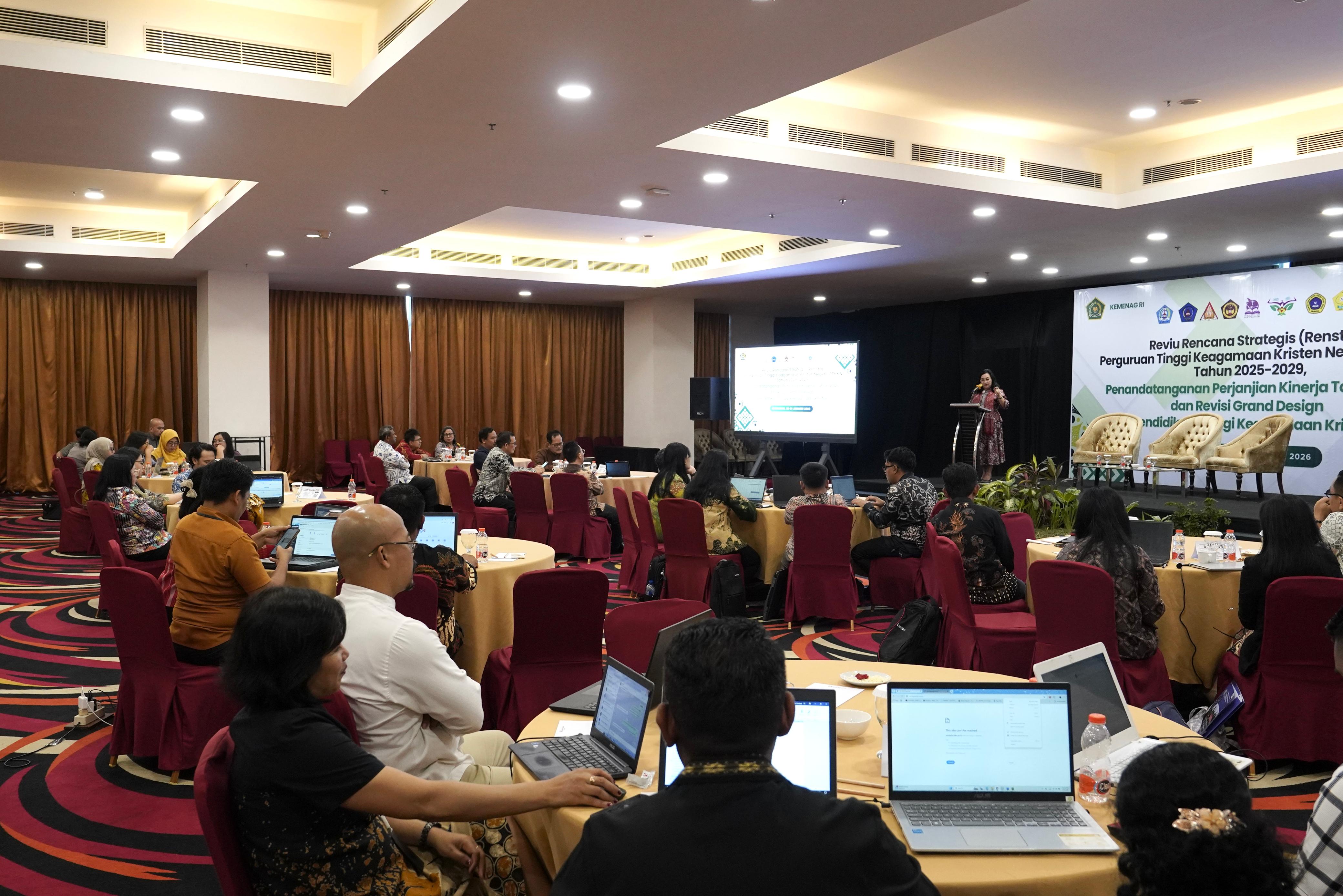 Makassar (DBK)---Kementerian Agama melalui Direktorat Jenderal Bimbingan Masyarakat Kristen menyelenggarakan kegiatan Reviu Rencana Strategis (Renstra) Perguruan Tinggi Keagamaan Kristen Negeri (PTKKN) Tahun 2025–2029, Penandatanganan Perjanjian Kinerja Tahun 2026, serta Revisi Grand Design Pendidikan Tinggi Keagamaan Kristen, pada 28–31 Januari 2026 di Makassar, Sulawesi Selatan.